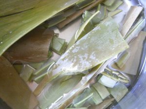 ※ 「アロエの葉をミキサーにかけて水を加えて煮詰め、ガーゼでこす」という方法もあります。面倒でなければ、ミキサー法をお試し下さい^^