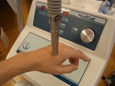 関節だろうが、指の横っちょだろうが、機械を使えばどんな場所でも同じ力でまんべんなく皮膚をトリートメントできるのがいいのです。