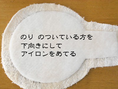もう一枚の顔の布に接着芯をつけます。 ※顔をアップリケした布に接着芯をつけてもいいです。