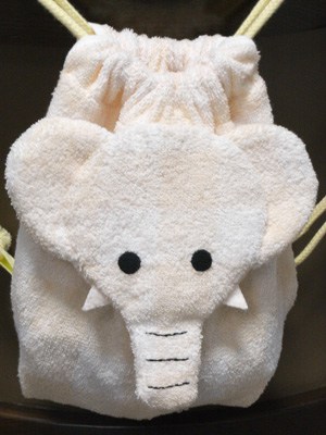 このぞうさんリュックができたら、普通の袋系のものは簡単に作れます。それと、ぞうさんじゃなくても、モチーフはドラえもんとかアンパンマンとか、でも作れます。
